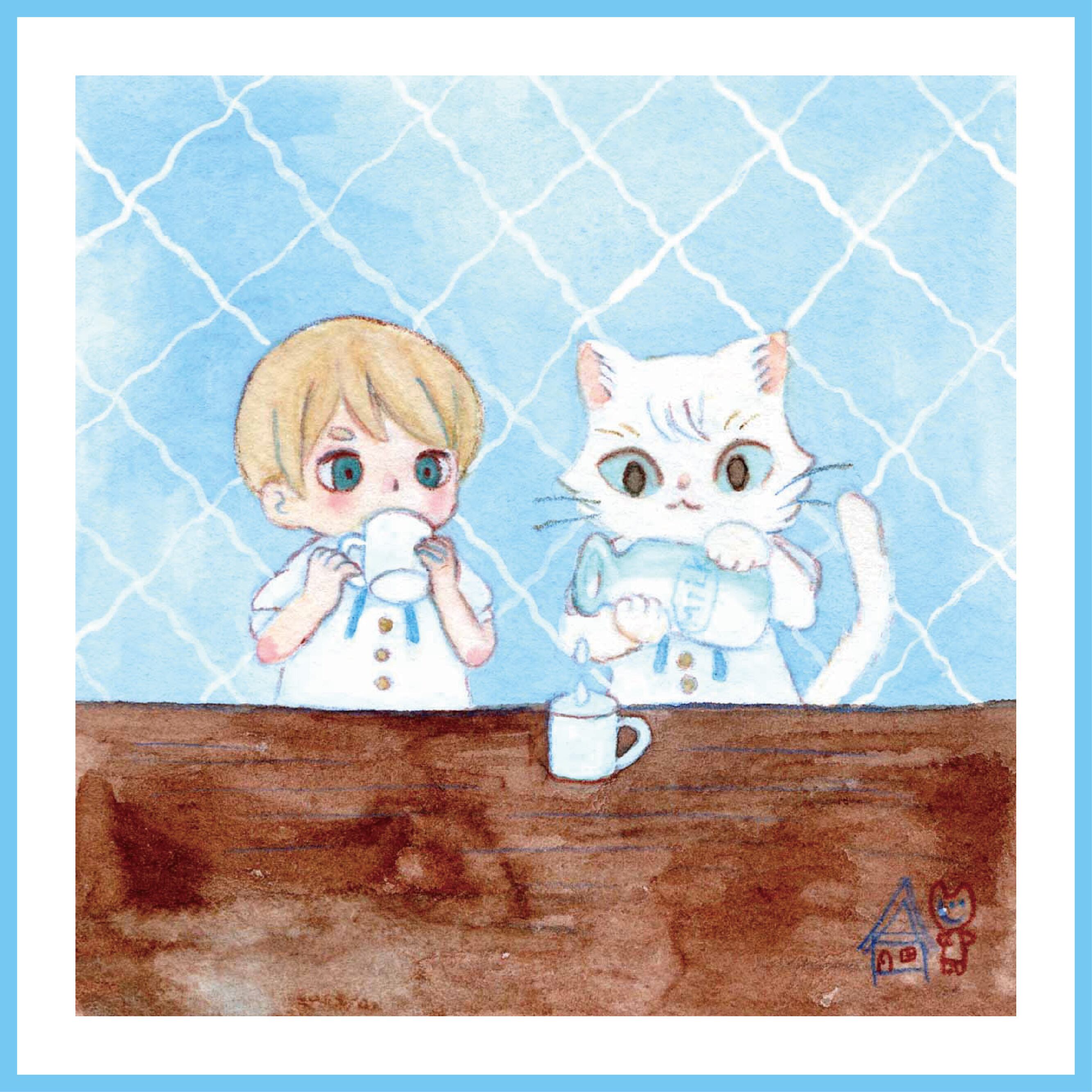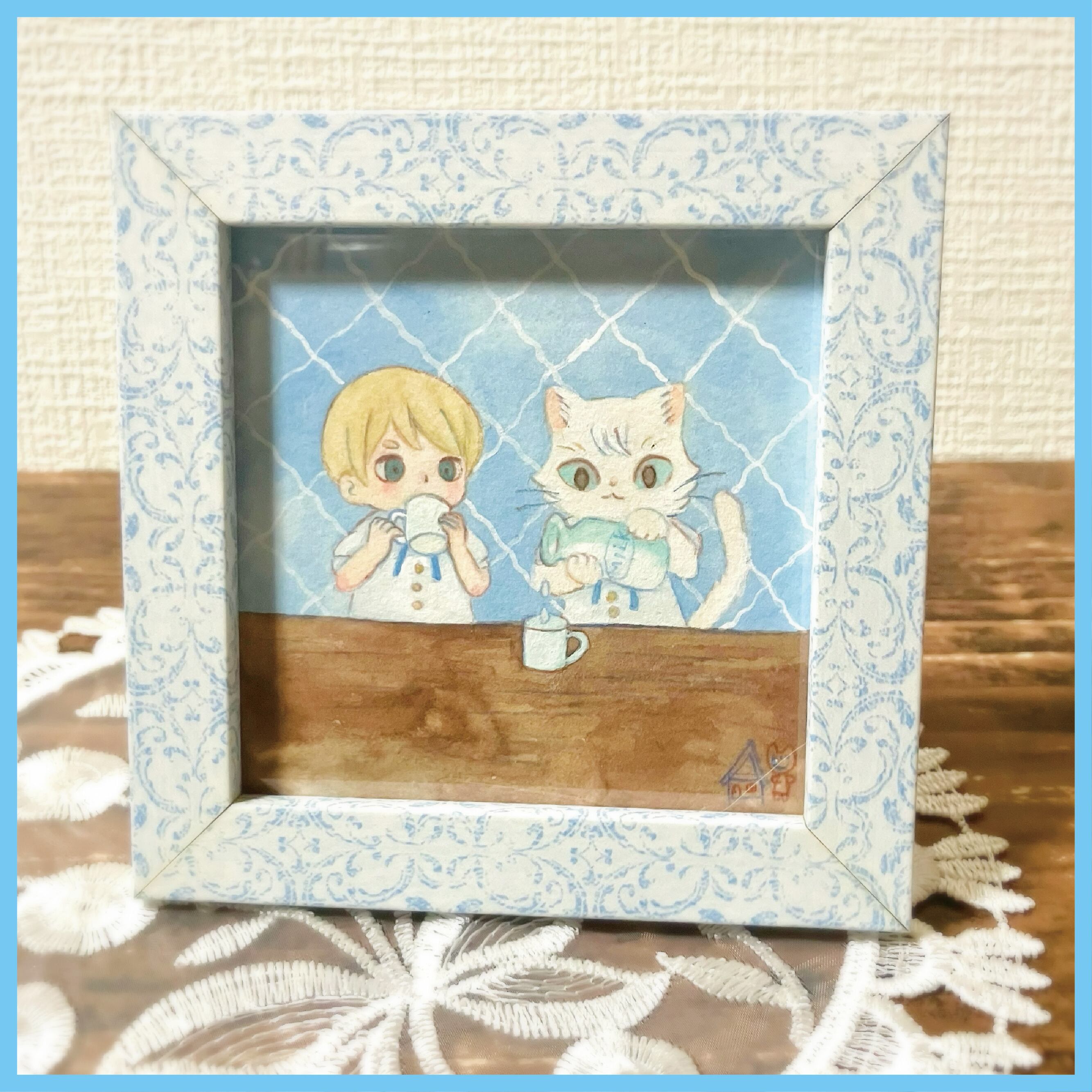 イラスト原画:牛乳をそそぐねこ